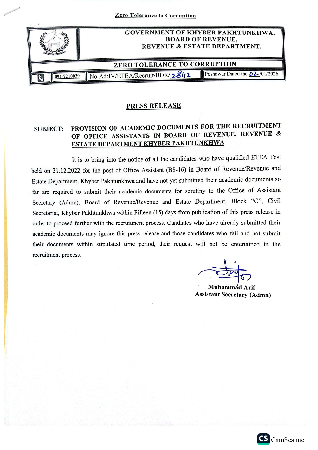 Provision of Documents for recruitment of Assistant Post author:boritkhyberpkpeshawarkpk Post published:February 3, 2026 Post category:General News Provision of Academic Documents for the recruitment of Office Assistant You Might Also Like Revenue Action May 7, 2021 Inauguration of SDC Alpuri Shangla May 2, 2021 DC Review meeting May 24, 2021